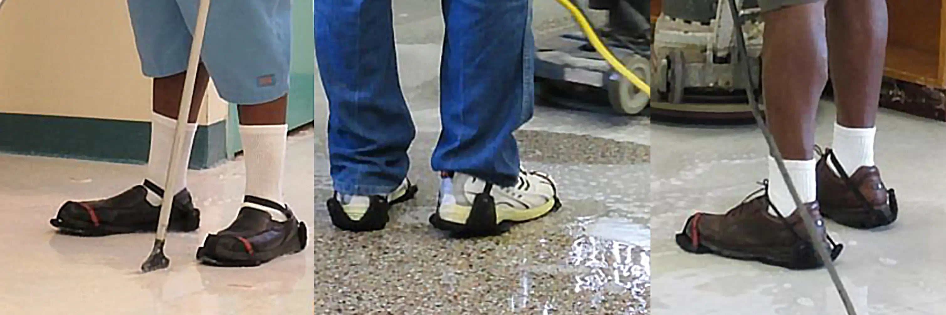 Footwear designed to help reduce the slips and falls associated with stripping floors. Three different options to suit each use and budget. Used by in-house cleaners (schools, universities, etc) and building-service-contractors nation-wide.